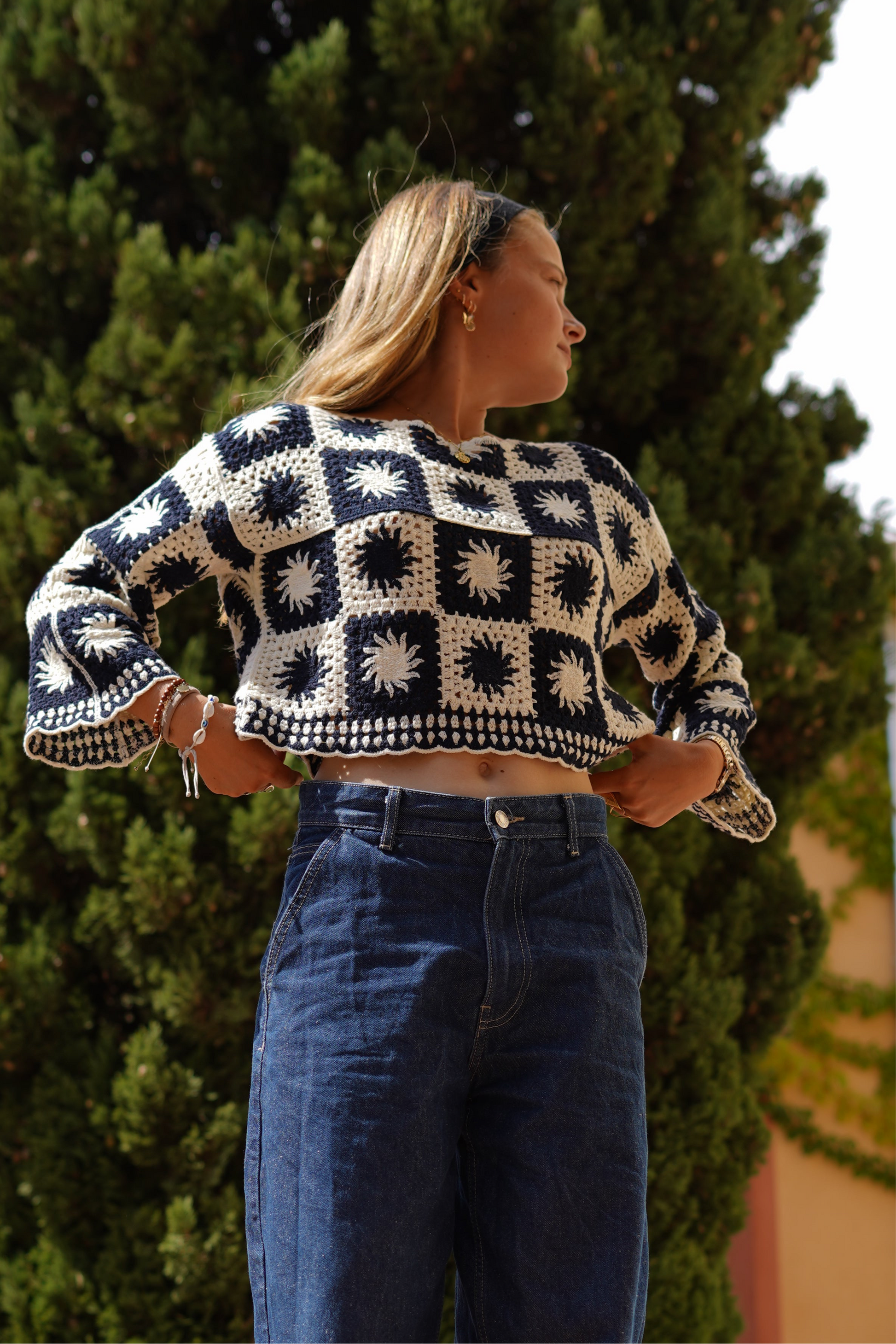 Ses manches longues apportent une touche bohème et élégante.